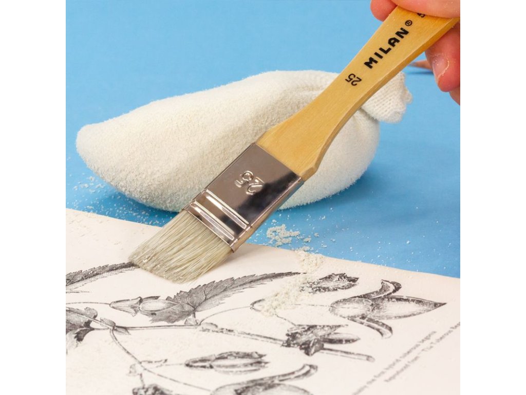 • elastický polštářek MILAN CLEANING CUSHION • určený na čištění a restaurování • rozměry 10 x 6,5 x 3,6 cm • Instrukce: 1. Stiskněte a lehce třeste polštářkem než vytvoříte tenkou vrstvu pryžového prachu na oblasti určené k vyčištění. 2.Krouživými pohyby prach jemně roznášejte měkkým štětcem. 3.Odstraňte prach z vyčištěného povrchu • MILAN SMM012EAN: 8414034001209