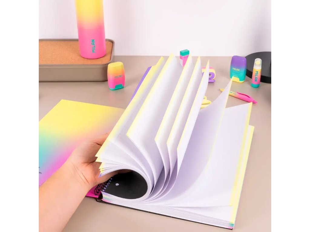 • blok s kovovou spirálou a pevnými kartonovými deskami, odolný a ideální pro každodenní používání • mikro perforace usnadňuje čisté a rychlé odtržení každého listu • vhodný pro poznámky, náčrty i technické kresby • vysoce kvalitní papír 95 g/m² • formát A4 se čtyřmi otvory pro snadné zakládání • flexibilní spirála s uzavíracím systémem coil-lock, spirála díky úpravě nepoškrábe stůl a nezatrhává oblečení • barevné rozlišení listů do bloků pro snadnou orientaci • MILAN 57142E120SNEAN: 8411574115281