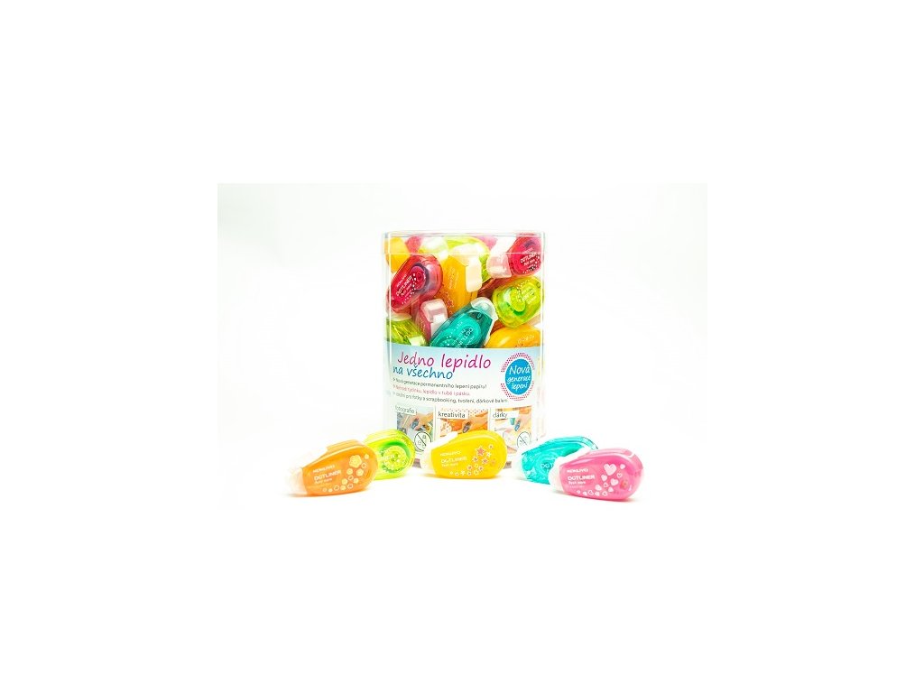 • lepicí strojky s permanentními lepicími body • nová generace lepení papíru DOTLINER Petit more • rychlé, přesné a čisté nanášení lepicí stopy o šířce 6 mm v barevných lepicích bodech • lepení rovně i v obloučcích, bez zkrabacení papíru • barevná stopa je skvělá pro vizuální kontrolu, kde bylo lepidlo naneseno • stopa neprosvítá na další přilepený papír • po použití ruce zůstávají čisté • lepidlo nevysychá a neobsahuje rozpouštědla • používá se ekologické lepidlo bez rozpouštědel ACID FREE • lepidlo vychází z vlastních standardů, které snižují kyselost, jež způsobuje zabarvení fotografií a papíru • jedno lepidlo na všechno - nahradí tyčinku, lepidlo v tubě i samolepicí pásku • ideální pro fotky a scrapbooking, tvoření, dárkové balení, lepení účtenek, výstřižků • krytka špičky lepidla je integrovaná na těle strojku, nelze ztratit • okénko pro utažení prověšené pásky, po nesprávném použití • kompaktní kapesní velikost - rozměry š. 55 × h. 10 × v. 25 mm • Kokuyo D920/7-48 mix barev • dóza 48 ksEAN: 8595560003742,8595560003759
