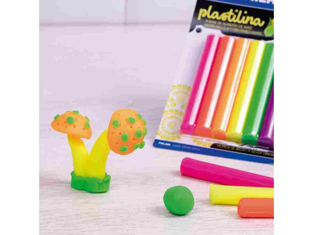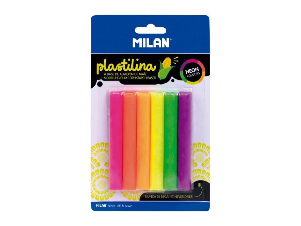 • MILAN plastelína řada Neon • 6 tyčinek barevné modelovací hmoty na bázi kukuřičného škrobu • lehce tvarovatelná • barvy se mohou míchat • nevysychají • stále měkká • bez lepku • MILAN 914706NEAN: 8411574098928