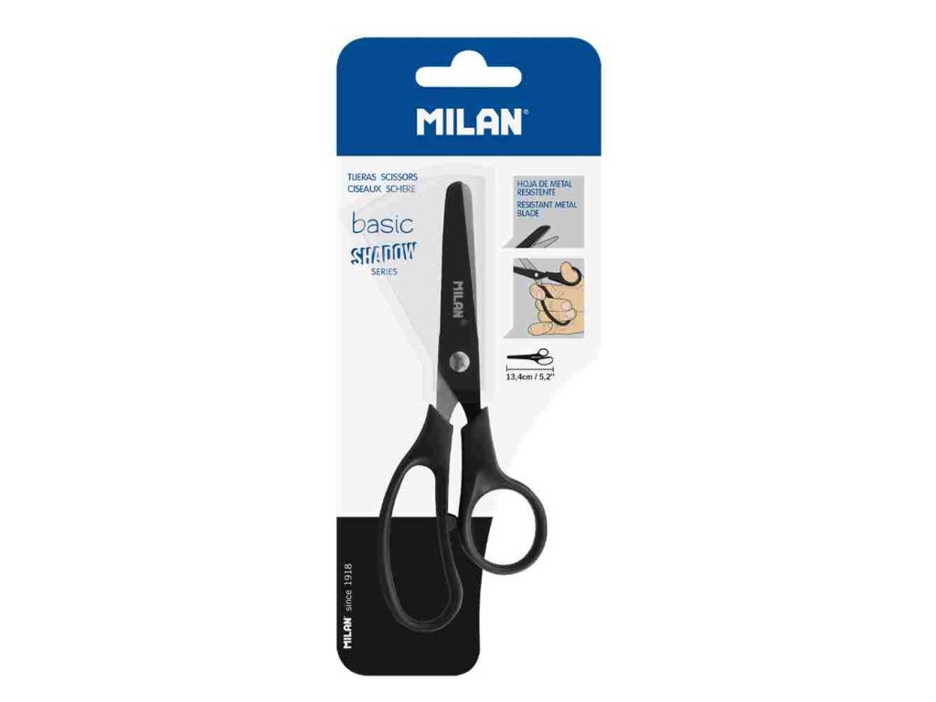 • nůžky Shadow Series s nerezovým břitem a zakulacenou špičkou pro bezpečné používání • plastová rukojeť pro pohodlné a jisté držení • délka 13,4 cm – perfektní velikost pro dětské ruce • černá barva • baleno na blistru • MILAN BWM10341DWEAN: 8411574106364