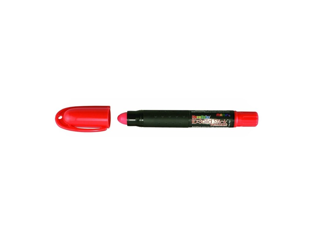 • červený pevný lakový popisovač v tyčince určený pro průmyslové značení v náročných podmínkách • barva je ve formě tuhé hmoty a zasychá po 5-7 minutách • píše hladce a nepřerušovaně i na nerovné, mokré, prašné či mastné povrchy, drží jako barva • vysoká krycí schopnost a intenzivní stopa • permanentní, voděodolný, odolný vůči otěru a mnoha rozpouštědlům • funguje na suchém, mokrém i mastném materiálu • skvělá přilnavost na povrchy: kov, dřevo, beton, plast, guma, kámen, sklo a další neporézní i porézní podklady • vhodný pro vnitřní i venkovní použití • plastové tělo s vysouvacím mechanismem a víčkem • hmota nezaschne díky ochrannému víčku a uzavíracímu systému • snadná manipulace i v rukavicích • stačí vysunout tyčinku, popisovat, a po použití opět zasunout a uzavřít víčkem • Marvy 247-S • 12 ks v baleníEAN: 028617240022