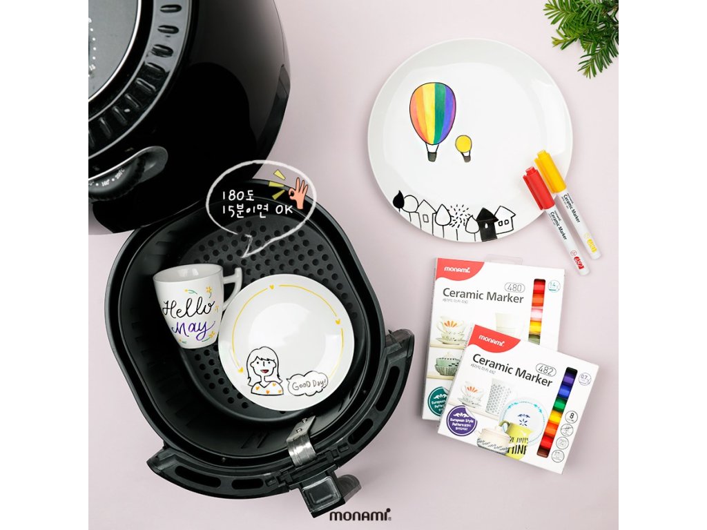 • popisovače na keramiku a porcelán, varné sklo • speciální inkoust s možností zapékání – odolný vysokým teplotám • syté barvy - černá, modrá, zelená, žlutá, oranžová, červená • přesná stopa • šíře hrotu 1,4 mm • kulatý hrot • po úplném zaschnutí lze dekorovaný předmět zapéct pro trvalou fixaci • mikrovlnná trouba 700 W na 8 min (domácí použití) / 1000 W na 6 min 30 s (profesionální použití), pečicí trouba: 165 °C na 15 min • pigmentový inkoust na vodní bázi zůstává stálý i během mytí • před každým použitím je nutné popisovač protřepat, stlačit hrot a počkat na nasáknutí inkoustu do hrotu • plastové tělo, víčko s klipem pro snadné přenášení a pohodlné používání • dekorovaný materiál musí být důkladně odmaštěn • široké využití na dekorace hrnků, talířů, misek • ideální pro design, umělecké projekty, školní práce nebo profesionální dílny • skladování popisovačů pouze ve vodorovné poloze • sada 6 barev • Monami 480/6EAN: 8801067275026