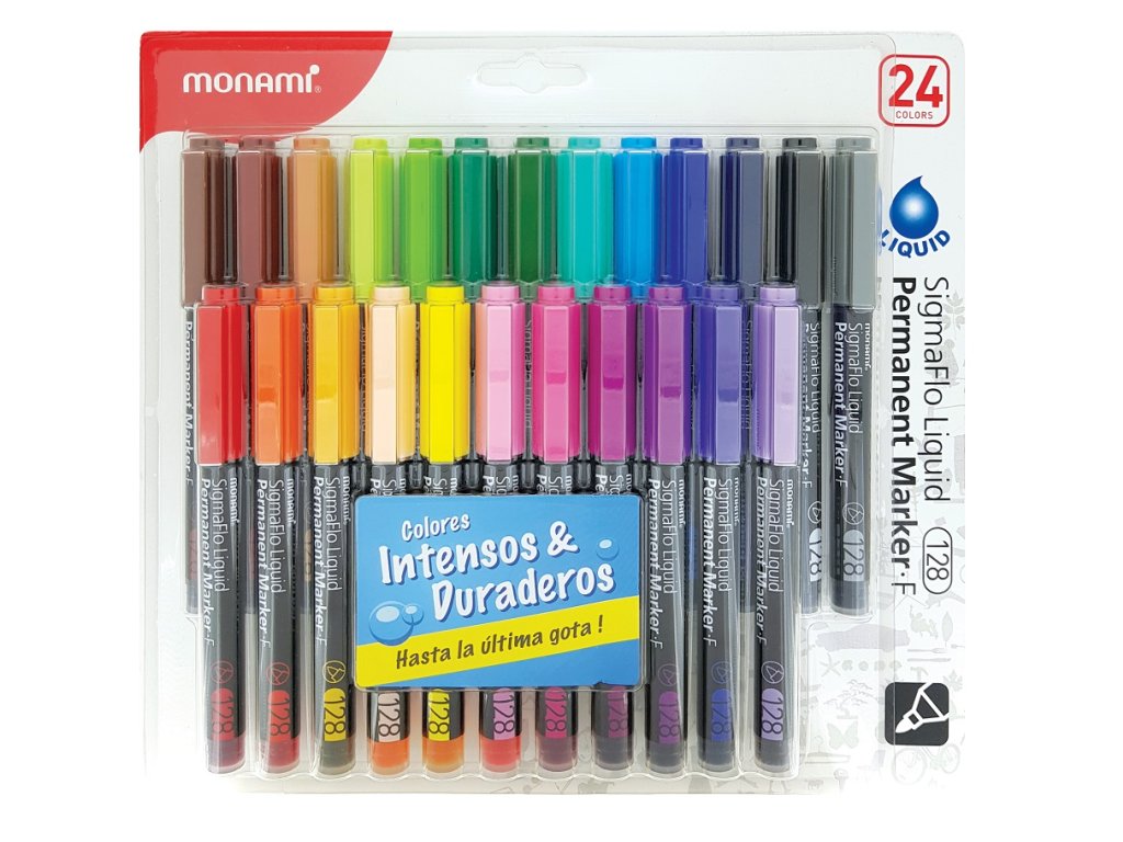 Popisovače permanentní s tekutým inkoustem MONAMI SigmaFlo Liquid F128 sada 24 barev