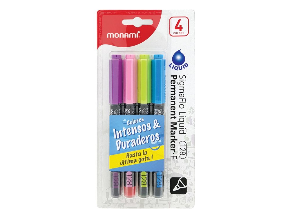 Popisovače permanentní s tekutým inkoustem MONAMI SigmaFlo Liquid F128 sada 4 barev