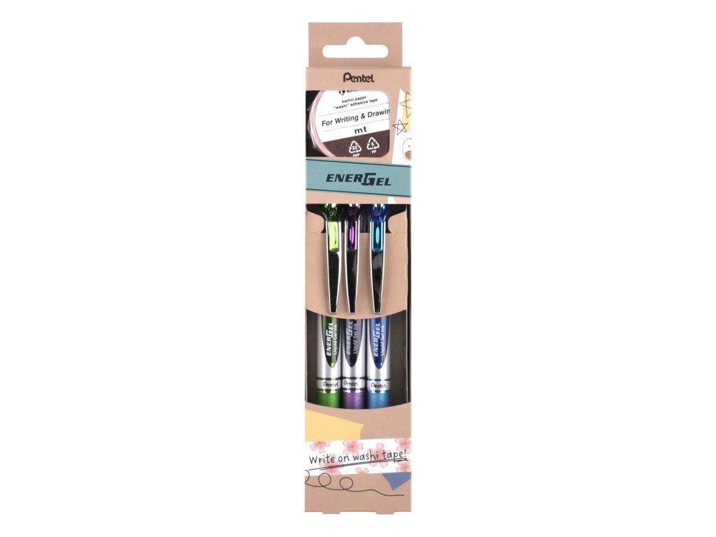 • gelová pera Pentel BL77 v sadě • kvalitní gelové rollery s tekutým rychleschnoucím inkoustem vhodným také pro leváky • mačkací mechanismus • pogumovaný úchop • kónický hrot • propracované plastové tělo s kovovými doplňky • v sadě světle modrá, fialová a světle zelená • průměr hrotu 0,7 mm • stopa 0,5 mm • vyměnitelná náplň LR7 • barva těla odpovídá barvě náplně • washi páska jako součást balení • washi pásky jsou ideální na zdobení fotoalb, diářů, deníků, Bullet journalů, na výrobu přáníček nebo na balení dárků • rozměr pásky 20 mm x 7 m • BL77MT-3COLEAN: 4016284352014