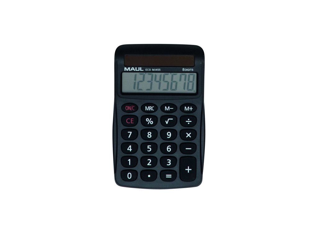 •8 místný LCD displej •1 řádkový • 3 klávesová paměť • oceněno ekologickou cenou "Blue Angel" •dobré pro životní prostředí • solární napájení • vyrobeno z 80% recyklovaného materiálu • ergonomický nakloněný displej •velikost 11,2 x 7 x 10,1 cm•váhá 46 g •černá barva •Maul ECO 7263190 MJ 455