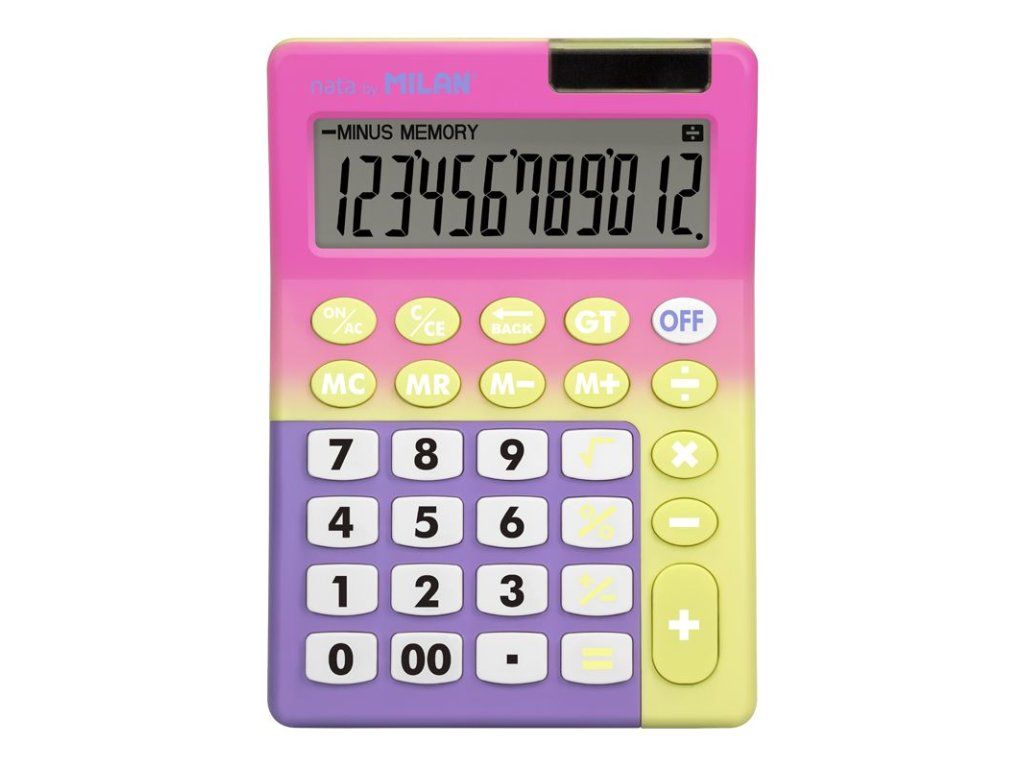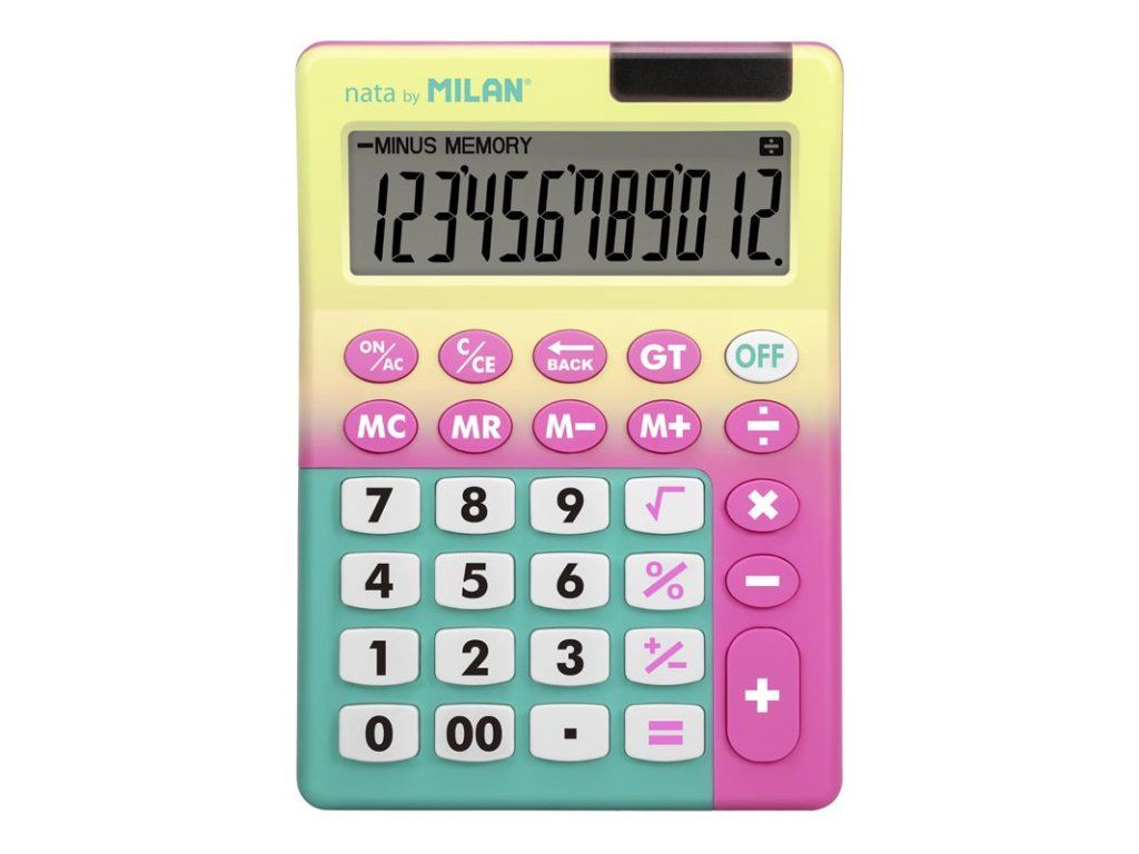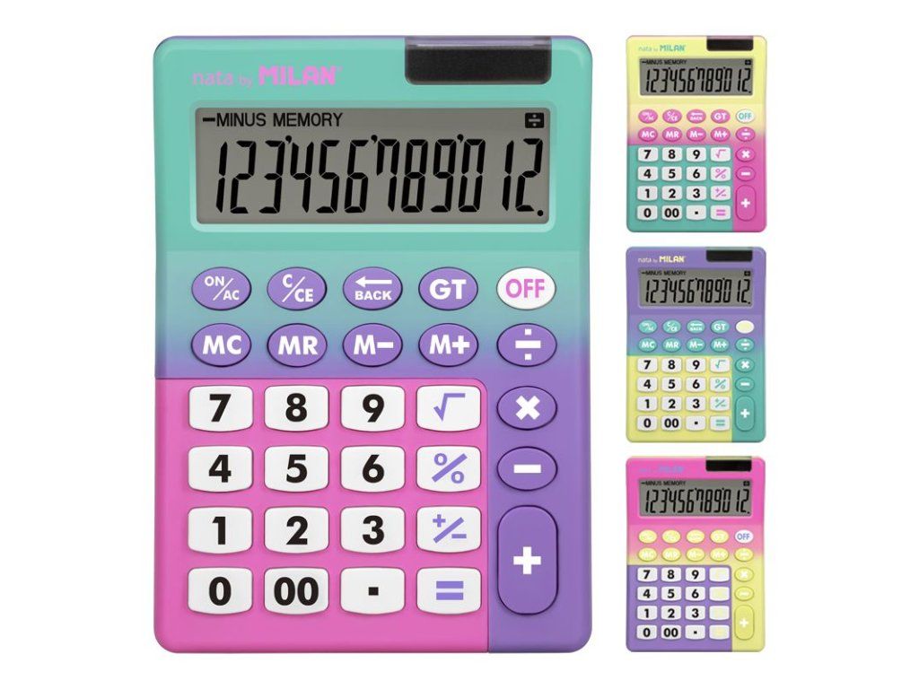 • stolní kalkulačka 12 míst • 4 paměťová tlačítka, funkce druhé odmocniny, funkce Grand Total a tlačítko zpět • dvojí napájení • rozměry 11.6 x 16.3 x 3.7 cm • MILAN 159706SNEAN: 8411574092469,8411574092476