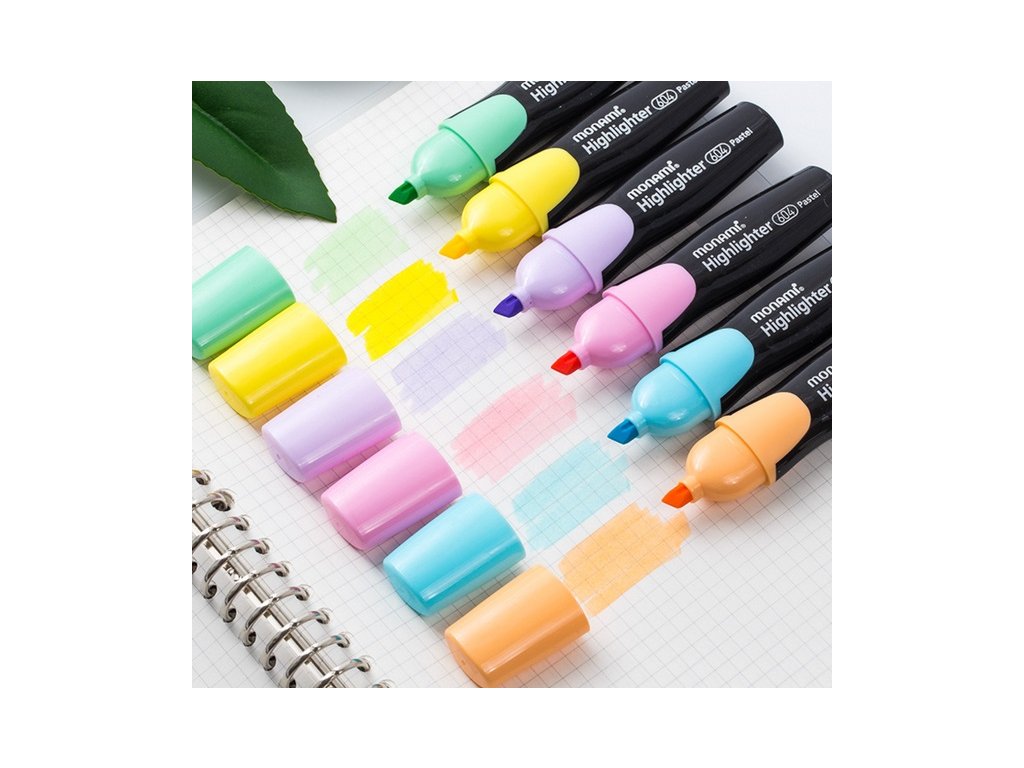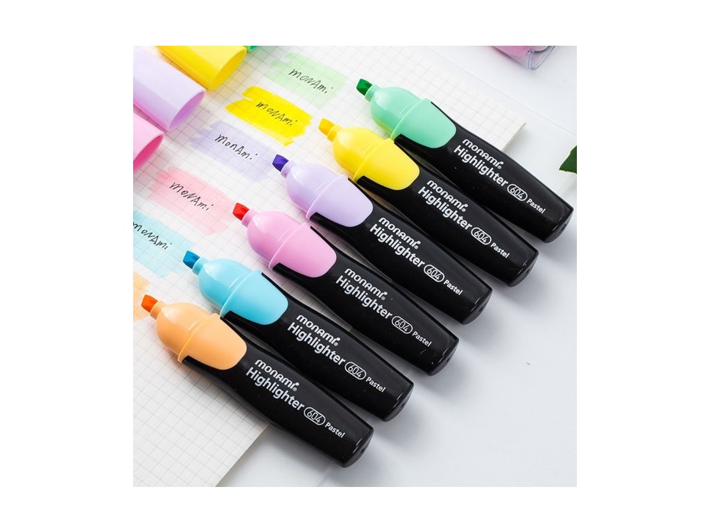 • elegantní pastelový žlutý zvýrazňovač s lesklým černým plochým tělem • zkosený hrot • šířka stopy 1 - 4 mm • fluorescenční inkoust s vysokou viditelností, pastelové odstíny pro další využití pro kreativní projekty • syté barvy, odolné vůči blednutí • rovnoměrná sytá stopa inkoustu • použití na papír • ploché tělo • Monami 604-PG • 12 ks v baleníEAN: 8801067259965,8801067259804